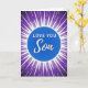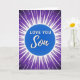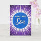 This card features a bright blue circle in the center with the words “LOVE YOU Son” in white. “LOVE YOU” is in simple, straight letters, while “Son” is written in a smooth, flowing style, and everything sits neatly in the middle of the circle. Around the circle, sharp white lines shoot outward like a starburst, spreading across the front. The background is a deep purple that softly shifts in tone, which makes the blue and white stand out even more. The whole look feels energetic and focused, but the message stays easy to read and heartfelt ❤️. It’s a meaningful card to give because it says what you feel right away, without needing extra words. It works well for a son you’re proud of and want to remind how much he’s loved 🥰. Hope it helps you share Valentine’s Day feelings in a simple, caring way.