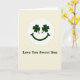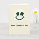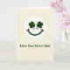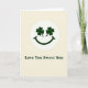This greeting card features a simple smiling face centered inside a white circle on a soft cream background, with two dark green shamrocks standing in for eyes to give it a sweet, affectionate look ☘️. The shamrock “eyes” feel like they’re gazing warmly at the reader, turning the little face into a friendly, loving character rather than just an icon. Beneath the circle, the message “Love You Sweet Son” is set in a dark forest-green serif font, centered and easy to spot against the pale backdrop 💚. The limited palette of cream, white, and deep green keeps the design calm and focused, like a quiet moment shared between family members. The shamrocks add a clear nod to St. Patrick’s Day while also making the face look bright-eyed and attentive. A small curved smile sits below the shamrocks, completing the gentle expression and keeping the layout nicely balanced. The white circular frame around the face is crisp and even, with plenty of open space around it for a neat, airy look.