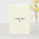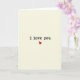 This greeting card keeps things simple and sweet, with the words “I ❤️ you” as the main focus. The background is a soft creamy off-white, with no extra objects or scenery to pull your eye away. The text looks like it was typed on an old typewriter, in slightly uneven black letters that feel honest and real. In the middle, a bright red heart takes the place of the word “love,” making the message feel romantic right away 💘. The heart is solid red and stands out strongly against the calm background. The words sit centered on the front, with the heart right between “I” and “you,” so the message reads clearly at a glance. Overall, it feels like a small note you’d give to someone you care about, whether it’s a partner or a close friend ❤️.