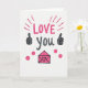 Designed with a white background, this card keeps the focus on a big “LOVE YOU” message in the center. “LOVE” sits on top in hot pink, all caps, with short pink lines radiating outward like a burst of excitement. Right below it, “YOU” appears in dark gray with smooth, flowing letters that look more relaxed and personal. On both sides of the words are two dark gray thumbs-up hands, almost like friends cheering the message on. Near the bottom there’s a pink envelope with a small black heart seal, hinting at a note you’d want to send to someone special. A few hot pink dots scatter around the lower area like little confetti, adding a light, happy touch. It feels meaningful because it’s direct, sweet, and supportive all at once—perfect for a partner or a close friend 🥰❤️. Hope it helps you share Valentine’s Day sentiments with someone you care about.