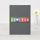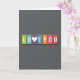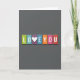 This card shows seven colorful tiles lined up across a dark gray background, spelling out “LOVE YOU” in big white capital letters. The tiles have rounded corners and small shadows, so they look slightly raised from the surface. “LOVE” sits on the left, and “YOU” follows right after it, all centered across the front. The “V” in “LOVE” is replaced by a white heart on a purple tile, and it stands out right away ❤️. The other tiles are lime green, sky blue, light blue, orange, fuchsia, and red, giving the message a bright, friendly feel without being too much. The overall look is simple and focused, which makes the words feel direct and sincere. It’s a meaningful card to give because it says what you feel in a clear way, whether it’s for a partner, a close friend, or someone you care about 🥰. Hope it helps you share your Valentine’s Day sentiments.