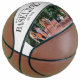 Personalized basketball with 3 of your favorite photos and fun quote. The design sits on a faux leather background in white with black typography which reads "love you to the baseline and back". The template is set up for you to add your pictures, which are displayed as 2x square and 1x portrait. A lovely photo gift for your dad or papa on father's day and perfect for a basketball fan at any time.