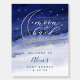 Welcome your guests with this modern Love you to the Moon and Back Baby Shower Welcome Sign featuring the sky in watercolor blue with faux gold glitter stars and moon.