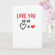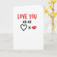 This greeting card keeps things simple and straight from the heart. On a plain white background, the words “LOVE YOU” sit in the center in bright red letters that look slightly rounded and casual. Just below, “XO XO” appears in smaller black letters, like a quick row of hugs and kisses. On the left side there’s a black outline of a heart, easy to spot and instantly familiar. To the right, a pair of full red lips adds a clear hint of a kiss, with a few fine lines that give them a little texture. The red lips match the red text, tying the whole look together without needing anything else. It feels meaningful because it says what you mean in a direct, caring way, whether it’s for a partner or someone you adore 🥰❤️.