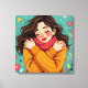 A cute whimsical folk art style girl in a warm cozy sweater giving herself a hug. Remember yourself that self-love is important with this pretty cart.