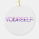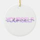 Lightweight, smooth, pure white ornament with nice sheen. Perfect size to be seen from across the room ... and to attract closer inspection! Price was great for ordering enough for the whole family! Clear, bold black design just as requested. Matches the order exactly. Just so nice!