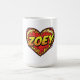 This comic-style graphic mug features the name "Zoey" over a beautifully designed energetic heart design. This is a great gift for your friend, girlfriend, wife, and sister.