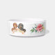 This is a heavy, durable bowl decorated with Tibbies of many colors, the perfect size for hungry/thirsty Tibs. The design is interesting and printing clear.
