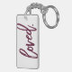 Loved. Burgundy Modern Trendy Script Typography Keychain