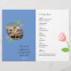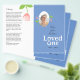 A fresh, clean memorial or funeral service program with stylized salmon rose bud graphics and Loved One typography with "forevermore" in an infinity symbol. NOTE: These come as a flat sheet. You will have to fold them yourself.