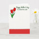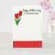 This card features a soft off-white background that keeps the focus on a sweet family bond ❤️. In the upper left, two stylized tulips lean toward each other like close companions, with deep red petals and slender green stems and leaves. On the upper right, the main greeting “Happy Mother’s Day” appears in green, written in a flowing cursive-style lettering that feels gentle and affectionate. Just beneath it, “TO A BEAUTIFUL AUNT” is set in green, in a simple all-caps print style that reads clearly. The open space around the flowers and words gives the layout an easy, airy balance, like a quiet moment shared between loved ones 🌼. Along the bottom, a wide horizontal band of rich red adds weight and warmth to the design. A neat row of small white half-circle dashes runs along the top edge of that red band, forming a stitched-border look.