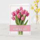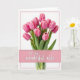 This greeting card centers on a lush bouquet of soft pink flowers set against a bright white background, like a quiet moment shared with someone close ❤️. The blossoms rise on green stems and leafy sprigs, and the inward-curling petals show gentle shifts from pale blush to deeper pink, giving them a tender, almost velvety look. A faint, transparent vase sits behind the stems, keeping the focus on the flowers while adding a calm, intimate still-life feel. The lighting is diffuse and gentle, making the pinks and greens feel fresh and springlike 🌼. Across the lower middle, a horizontal rectangular banner in light pink stretches from side to side. Centered on that banner, the message “to my wonderful wife” appears in white lettering that looks smooth and flowing. A thin pink border frames the entire design, with the bouquet standing tall slightly above the banner and the vase subtly visible beneath it.