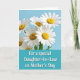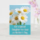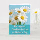 This card features a tall spray of white flowers with sunny yellow centers filling the upper portion, set against a soft light-blue background that feels calm and open. Some blooms are crisp while others fade slightly into the distance, giving the arrangement gentle depth and a sense of closeness, like friends leaning in for a photo ❤️. The petals fan outward in neat layers, and the golden centers show fine dotted texture that draws the eye. Across the bottom section, a wide teal-blue band adds strong contrast and steadies the airy floral scene above. Centered on that teal area is a short message in a flowing, cursive-style font, colored in pale white with a light raised look so it stands out without shouting. The overall lighting is bright and even, making the flowers look fresh and softly affectionate, like a quiet gesture shared between two people 🌼. The teal panel has smooth edges, and the lettering sits neatly in the middle with plenty of space around it.