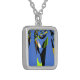 Lovely Blue African Tribal Motif Pattern Art Print Silver Plated Necklace