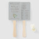 A lovely blue and gray wedding program hand fan, this is a way to include your wedding program in your ceremony, this wedding fan features an easy to use template for entering information. With a blue background and gray text, personalize yours today!