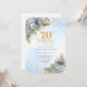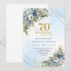 Celebrate a milestone in style with this elegant 70th birthday invitation featuring watercolor dusty blue and white flowers, soft eucalyptus greenery, and a shimmering gold frame. Designed in chic boho style with refined script lettering, this floral invitation is perfect for a classy 70th birthday party. Ideal for formal, garden, or luxury celebrations with a timeless, sophisticated touch.