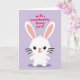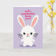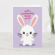 This design shows a white bunny centered on a pastel lavender background, drawn with soft rounded shapes that feel gentle and friendly 🐰. Its long ears reach upward with light pink inside details, like a shy blush that hints at affection. The face is simple and sweet, with big black eyes topped by three little lashes, a coral-pink nose, and a small curved smile that suggests a warm hello. Three short dark whiskers on each cheek add a cozy, companionable look, as if it’s leaning in for a quiet moment with someone special. A faint deeper-lavender shadow sits beneath the bunny to give it a little grounding without adding clutter. Near the top, a short message appears in bright fuchsia letters, centered above the character so it reads first, then leads your eye down. The text uses rounded, casual lettering that feels like a friendly note, and the bunny below keeps the focus with its pink ear accents and tiny coral nose 🌷.