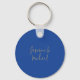 Lovely Chic Calligraphy Couple Names Blue & Gold Keychain