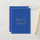 Lovely Chic Calligraphy Couple Names Blue & Gold Postcard