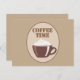 Go to coffee with friends, using this coffee themed postcard. Featuring a tan background with an oval "coffee time" graphic, place your order today!