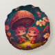 Lovely cute elves play under mushrooms round p round pillow