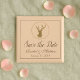 A lovely save the date magnet for your rustic themed wedding, this item features a deer image with a wreath surrounding it. Use the easy to fill in templates for your information, the background is beige.