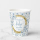 Add a memorable touch to your special day with these customizable watercolor dusty blue floral paper cups, designed to celebrate your little one in the most charming way.