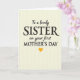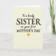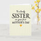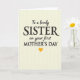 This card features a softly textured pale cream background with faint vertical lines that feel gentle and calm. Centered on the front is a stacked message in deep charcoal lettering, mixing a classic serif style for the main words with a flowing, handwritten-like style for the smaller phrases. The layout guides your eye from “To a lovely” at the top into the larger “SISTER,” then down through “on your first” and the prominent “MOTHER’S DAY,” suggesting a close bond and a proud, affectionate nod between family members ❤️. The contrasting letter styles add a tender, intimate touch, like a note written with care and meant to be kept. The text stays neatly centered, with generous spacing around it so the cream background can breathe. A small golden-yellow heart sits just beneath the final line, adding a sunny pop of color 🌼. The heart is placed directly under the centered wording, glowing warmly against the pale cream backdrop.
