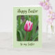 This card features a single two-toned flower centered inside a dark-edged rectangular frame that looks like an aged photo border. The petals shift from rich fuchsia near the middle to soft white along the outer edges, giving the bloom a gentle, affectionate presence 🌷. A slim reddish-brown stem rises from a softly blurred field of green leaves, like a quiet garden moment shared side by side. The wider background is a pale sage green, keeping the scene calm and inviting. Deep forest-green lettering sits above the framed flower and again below it, balancing the layout. The letterforms are flowing and slightly informal, like a note passed between close friends with a tender smile 🐇. The top line is centered near the upper margin, while the lower line sits centered beneath the frame in the same green tone.