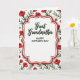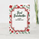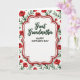 Designed with a graceful white center panel, this card places a tender focus on a loved one with an airy, celebratory look ❤️. A deep red double border with soft curves frames the panel, and a faint shadow makes it seem gently raised from the background. Near the top of the white space, the words “Great Grandmother” appear in flowing dark green lettering, like a careful note written with affection. Just beneath, “HAPPY MOTHER’S DAY” is set in uppercase, simple lettering that’s easy to read and centered on the panel. Around the frame, a repeating garden pattern fills the background, suggesting a caring presence that surrounds the message like a warm embrace 🌼. Red blossoms resembling small rosebuds mingle with slender green leaves and thin stems, spaced evenly so the design feels calm and close. The palette stays crisp with white space, rich reds, and fresh greens, keeping the focus on the central panel while still feeling full of life. The floral shapes have a soft painted look, with petals and leaves outlined gently against the white background.