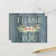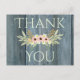 Set upon a blue wood rustic background, this floral thank you card will get your message across. Send your thank you's today!