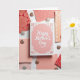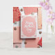 This greeting card sits at the center of an overhead flat-lay scene, arranged like a small celebration of closeness ❤️. The card is rectangular with a blush-pink background, and a white message is placed prominently in the middle in flowing lettering. A delicate border frames the edges with floral and lace-like shapes, giving the message a gentle, romantic focus. Around it, assorted paper swatches form a tidy ring, mixing rose, coral, muted peach, and deeper red tones in a friendly, cozy palette. The patterns include stylized blossoms, scattered mini florals, polka dots, and tiny hearts that suggest a sweet connection without needing a character or scene. Small round glitter accents are tucked between the papers, catching light like little shared glances 🌼. The discs shimmer in cool silver and warm rose-gold, standing out against the mostly matte papers under soft, even lighting.