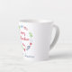 Enjoy a latte with a patriotic latte mug. This custom made item features a beautiful red green and blue wreath with "Happy Independence Day" written inside with red cursive font. Underneath your text is written in lovely blue font. Personalize your latte mug today!