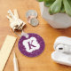 Lovely Labels Purple Damask Custom Initial Keychain