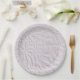 These large paper plates with a crinkled design are a lovely lavender that will fit in with wedding showers or any occasion featuring pastel colors.
