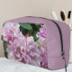 Zippered dopp kit toiletry bag that features a photo image of lavender colored Roses with matching, solid lavender colored top and side panels. Perfect accessory bag for your toiletries for on-the-go travel!