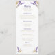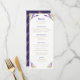 Nothing says romance like lavender, and on this fall wedding menu, the delicate blossoms make a soft frame for the text. Wheat is paired with the lavender to add a rustic flair to the design. A sans serif typeface is used for the headings for modern simplicity. On the back, a dark purple background contrasts with a white front. A wheat and lavender pattern also decorates the back. Celebrate your romantic fall wedding with this rustic lilac menu.