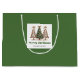 Minimalist watercolor christmas tree gift bag with playful leopard pattern in earthy green and gold. Personalize with your custom name for a stylish Christmas gift presentation.