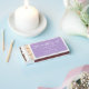 This lovely lilac wedding matchbook features beautiful white typography on a soft purple background for a spring ceremony in the afternoon. This lavender pastel matchbox is a delicate color choice for an elegant garden occasion.