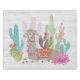 A soft, watercolor with a llama lounging among cacti. Artist: Mary Urban