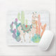 A soft, watercolor with a llama standing among cacti. Artist: Mary Urban