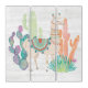 A soft, watercolor with a llama standing among cacti. Artist: Mary Urban