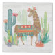 A soft, watercolor with a llama standing among cacti. Artist: Mary Urban