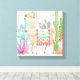 A soft, watercolor with a llama standing among cacti. Artist: Mary Urban