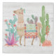 A soft, watercolor with a llama standing among cacti. Artist: Mary Urban