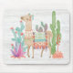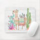 A soft, watercolor with a llama standing among cacti. Artist: Mary Urban