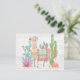 A soft, watercolor with a llama standing among cacti. Artist: Mary Urban