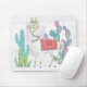 A soft, watercolor with a llama standing among cacti. Artist: Mary Urban