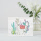 A soft, watercolor with a llama standing among cacti. Artist: Mary Urban