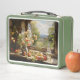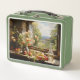 This is a standard metal lunchbox that appears to work just fine. We designed this box ourselves with an uploaded photo and custom text on the front and back. It looks absolutely beautiful except the front of the lunchbox is not centered like it shows in the photo. The print borders don't align with the inset flat part of the box where the preview photo online showed it perfectly centered in there. The back looks nice and centered though.